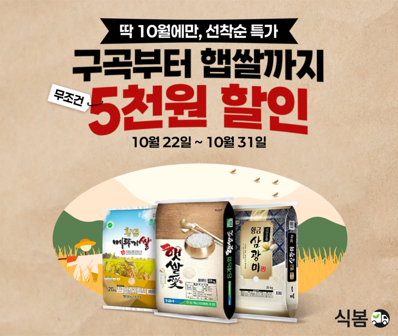 할인 행사는 10월 22일부터 31일까지 열흘간 진행되며, 구곡부터 햅쌀까지 모든 품목이 할인 대상이다. 혼합미, 단일미, 고시히카리 등 다양한 품종의 쌀을 구매하는 고객 2천 명에게 선착순으로 5천 원 상당의 할인 쿠폰이 지급된다. 이와 별도로 일부 유통사의 쌀 품목은 최대 20%까지 추가 할인 혜택이 제공된다.