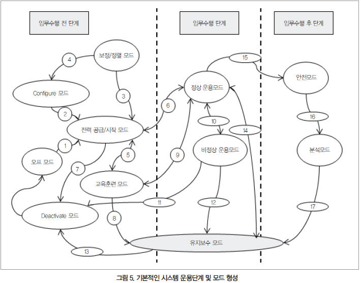 요약해서 이상 논의된 내용은 시스템 단계, 모드, 운용상태 개발에 적용된 기본 원칙을 설정하는 데 기반을 제시해 주고 있다.