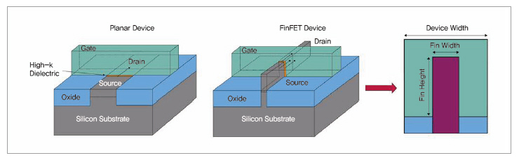 반도체 산업은 계속적인 성능과 밀도 개선을 위해 IC 제작 방식에서 중대한 변화를 요구하고 있으며, 이러한 변화는 설계 방식에 영향을 미칠 가능성이 있다. finFET 개념을 기반으로 하는 3차원 트랜지스터 구조는 20nm 세대의 평면 트랜지스터를 사용했을 때보다 성능이 우수하다. 때문에 파운드리(반도체 수탁생산업체)는 finFET 개념을 기반으로 하는 3차원 트랜지스터 구조를 사용한 14nm 및 16nm 공정으로 확대하고 있다.