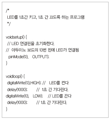 리스트 1. 아두이노LED 제어 프로그램 예제