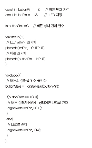리스트 2. 버튼의 상태를 판단하는 프로그램 예제