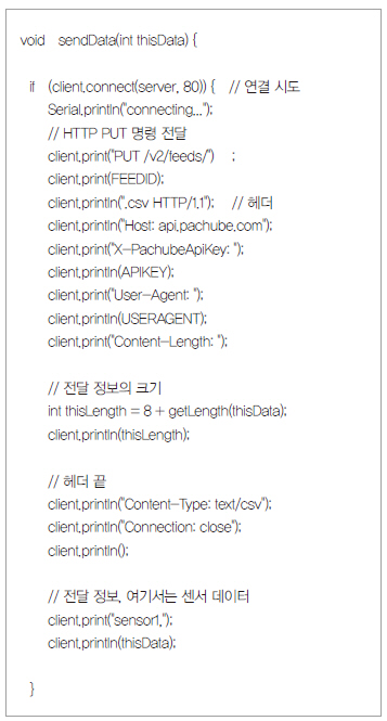 리스트 4. 아두이노에서 REST API를 사용한 정보 전달 소스