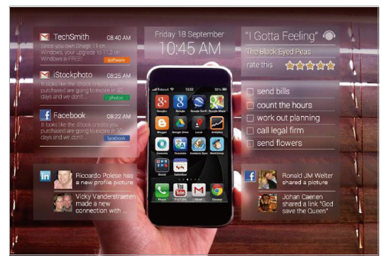 즉, 스마트폰이 웨어러블 내지 사물인터넷 앱 접근을 가능하게 해 정보 접근과 공유, 특정 디바이스의 명령과 제어, 의사결정 등을 돕는 지능적 분석을 가능하게 할 수 있다.