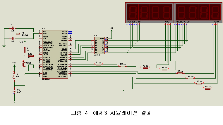 proteus VSM으로 시뮬레이션 한 결과를 살펴보면 그림 2와 같다.