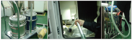 ⑥ 미세 분말을 취급하므로 작업자의 안전 수칙과 작업 환경의 관리가 요구된다.