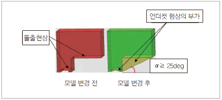 ④ 돌출부나 언더컷 부분은 별도의 서포트나 설계상 대책이 필요하다.