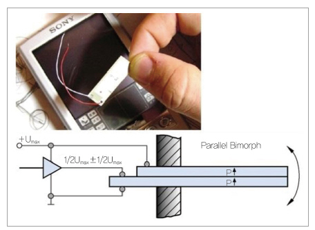 그림 3. 압전 물질과 바이모프를 이용한 압전 액추에이터