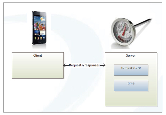 온도계에서 필요한 정보는 온도/시간 정보다. 스마트폰에서는 온도에 대한 정보를 블루투스를 통해 온도계에 요청하고 측정된 온도/시간 정보를 전달받는다. 이것은 마치 클라이언트/서버 구조에서 요청하고 정보를 받는 구조와 유사한 구조로 동작한다.