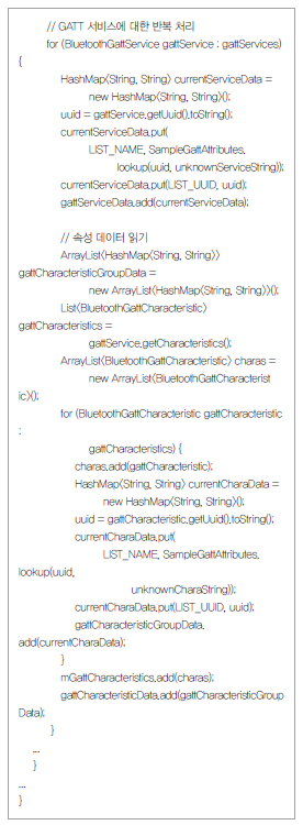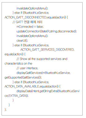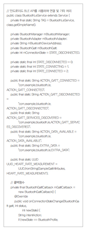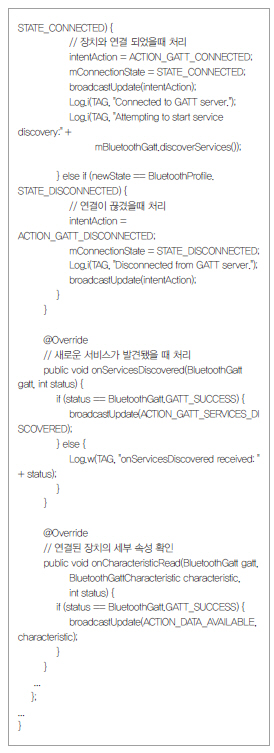 다음 소스는 안드로이드 운영체제에서 GATT에 대한 접속을 처리하는 것이다.