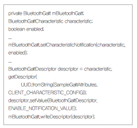 아이폰에서와 마찬가지로 BLE에 관련된 프로파일 및 연결 방식은 동일하게 다루어지나 그 차이에 대해서는 좀 더 살펴볼 필요가 있다.