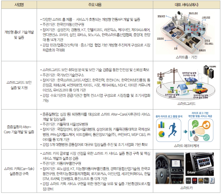 표 1. 사물인터넷(IoT) 융합실증사업
