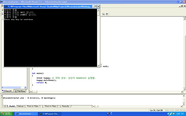 소멸자 예제를 살펴본다. 프로그램에서 Seoul::~Seoul()가 소멸자이다.