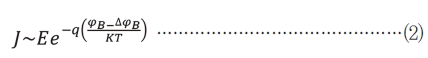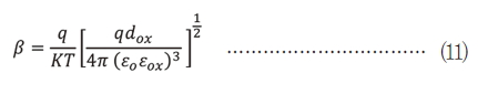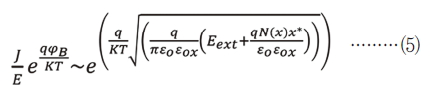 여기서 jB, q, T, 그리고 K는 각각 트랩 배리어 높이, 전하량, 온도, 볼츠만 상수이며, ?jB 는 다음과 같이 주어진다.
