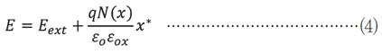 외부 전위(potential)는 Eext=Vgate/dox이며, 여기서 dox는 폴리옥사이드 두께이므로 위의 식은 다음과 같이 쓸 수 있다.
