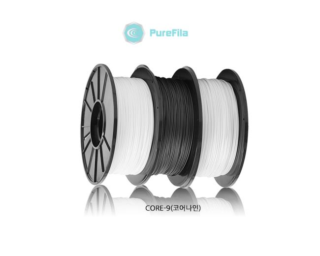 3D타운이 새로 출시한 퓨어필라 코어9은 약 110℃(딥핑 시)의 높은 온도와 90J/m의 충격을 견디는 출력물을 만들 수 있다. 여기에 유연성·탄성·연마성 등이 모두 향상돼 ABS필라멘트처럼 출력물의 후가공에도 유리하다는 것이 3D타운 측의 설명이다. 또한, 통상적인 PLA필라멘트에 비해 냉각시간도 짧아 고속출력이 가능하며, 수축율이 매우 낮아 출력물의 변형이 적고 대형 크기의 출력에도 유리하다.