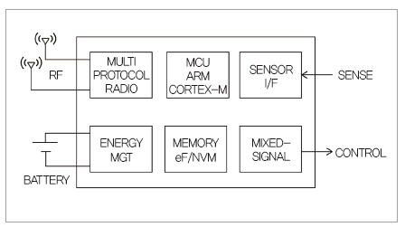 그림 1. 애플리케이션 중심에서 RF부터 에너지 관리, 센터 인터페이스까지 모든 장치를 제어하는 MCU