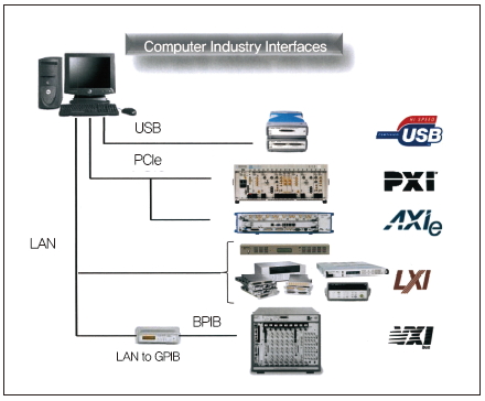 일반적으로, 계측장비들은 개별적인 장비에서부터 성능을 발휘하며 여러 가지 기능을 구현하는 역할도 하지만, 어떤 경우에는 장비 자체보다는 컴퓨터를 활용해서 장비를 제어하거나 장비가 측정한 어떤 데이터를 컴퓨터로 가져와서 처리하는 다양한 형태의 작업을 한다. 컴퓨터를 활용해서 제어하는, 이른바 ‘컴퓨터 인더스트리 인터페이스’는 가장 많이 사용하는 모듈러 솔루션이다.