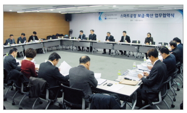 스마트공장 사업 총괄 관리기구인 민관합동 스마트공장추진단(이하, 추진단)과 전국 18개 창조경제혁신센터가 사업추진을 위한 실무 이행방안에 합의하고, 지난해 12월2일 광화문 KT빌딩에서 업무협약을 체결했다.