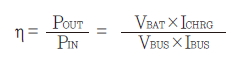 이를 방지하기 위해 각각의 IC와 그 인접 그라운드 평면 부분에 열 예산 일부를 할당해야 한다. 열 예산을 할당함으로써, 수 암페어(A)의 전류를 방출하는 작은 풋프린트의 싱글 I-FET 충전기가 디바이스 케이스 온도를 상승시키지 않고 방산할 수 있는 열의 양에 하드 리밋(hard limit)을 설정할 수 있다. FET가 집적된 벅 충전기의 경우, IC의 효율은 다음과 같다.