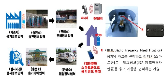 이와함께 LPG용기 검사공정 실시간 모니터링 시스템의 핵심 요소로서, 제작시부터 LPG용기에 RFID 태그를 부착하고 제조, 유통, 검사정보 등을 기록해 재검사를 누락하거나 부실검사가 있었는지 여부를 즉시 확인할 수 있는 LPG용기 이력관리시스템도 함께 도입할 계획이다. LPG용기 이력관리시스템은 오는 3월부터 제주도에서 시범사업을 거쳐 2017년부터는 전국으로 확대될 예정이다.