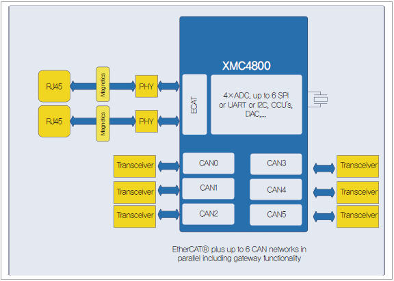 XMC4800으로 EtherCAT과 CAN을 동시적으로 실행할 수 있으며 게이트웨이 모드도 가능하다