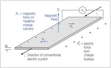▲ 그림 1. 홀 효과는 자기장이 도체를 통과하는 전류 흐름에 어떻게