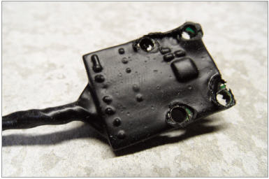 그리고 보드를 코팅 혼합물에 담가서 양생했다. 몇 시간 동안 양생 후, 절연보호 코팅된(conformal coating) 보드 시험 준비를 완료했다. 간단한 DC 모터는 로터 끝에 부착된 6mm 직경의 자석이 어댑터 보드 AS5055A 칩 중앙으로 설치하는 방식으로 고정물에 탑재했다(그림 3).