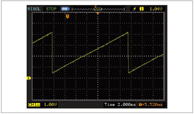 동일한 코팅과 침수 기술을 사용한 유사한 시험 출력이 오실로스코프 화면에도 표시된다(그림 6). 삼각형 파형은 360°완전 회전을 통해 자석의 회전을 표시한다. 0°에서 MPOS의 아날로그 출력 전압은 최소값이며, 360°에서 최대값이 나타난다. 이 두 시험 모두 이와 같은 해결 방식이 완전히 침수된 열악한 환경에서 모든 기능을 유지하는 MPOS로서 신뢰성 있게 동작되는 것을 보여준다.