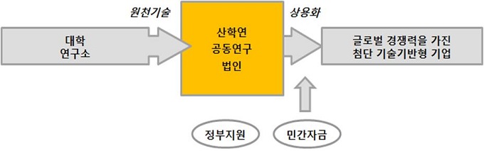 ‘산학연공동연구법인’은 산·학·연이 전략적 협력관계를 형성하고 독립된 기업을 설립해 기술사업화 초기 ‘죽음의 계곡(Death Valley)’을 극복하는 공공-민간 사업화 협력 모델이다.