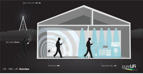 영국의 에딘버러 대학의 Harald Haas교수에 의하여 명명된 LiFi(Light Fidelity)는 LED전구의 파장과 밀접한 관계가 있다. 기존의 WiFi는 라디오 파동을 사용하였다면 LiFi는 빛의 파동을 사용하며 빛의 파동 위에 데이터를 실어서 전송하는 방식이다.