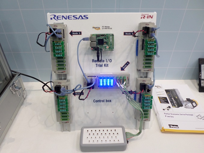 전시회에서 소개한 산업용 이더넷 통신용 LSI는 리얼타임 OS 엑셀러레이터와 하드웨어화한 통신 프로토콜 처리를 일체화시킨 'R-IN 32엔진'에 의해 초고속 리얼타임과 저소비 전력통신을 실현한다.