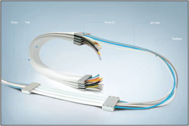 A. 톰플랫(ThomFlat)은 톰 시리즈 중 가장 최신 기술로 개발된 신제품이다. 최소의 설치 공간에 최대의 케이블을 활용하기 위해서는 또 다른 솔루션이 필요했으며, 이러한 요구를 만족하고자 접합시스템인 톰플랫을 개발했다. 고객들은 톰플랫을 케이블 베어에 삽입하거나 옆면에 또 다른 포드를 부착하여 공압호스와 함께 사용할 수도 있다. 이처럼 플랫과 포드가 결합되어 있는 연결 형태의 적층구조는 산업용 장비 및 기구가 점차 소형화되는 추세에서 케이블 용적률을 기존 대비 30% 포인트 업그레이드할 수 있다.