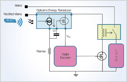 시스템을 켜려면, 광학 에너지가 전기 에너지로 변환되어 디지털 디코더로 공급된다. 내장된 코드를 인식하면 릴레이 코일을 구동하는 트랜지스터를 켠다. IR 버스트가 종료되면, 트랜지스터는 더 이상 릴레이를 구동하지 않고 스위치는 다시 개방된다. 그러므로, 릴레이 단락을 유지하기 위해서는 일부 부가 회로를 추가해야 한다.