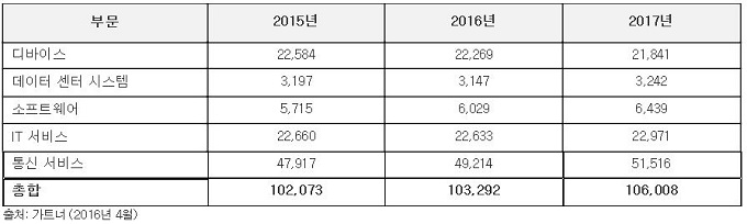 가트너, 2016년 한국 IT 지출 103조원 전망...전년대비 1.2% 증가