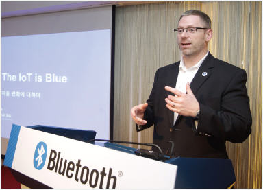 블루투스 기술 개발을 지원하는 다국적 기업 연합 단체인 블루투스 SIG는 지난 3월 31일, 서울 코리아나호텔에서 ‘블루투스로 연결되는 사물인터넷 세상’이라는 주제로 기자간담회를 개최했다. 스티브 헤전더퍼(Steve Hegenderfer) 블루투스 SIG 개발자 프로그램 담당 이사는 이날 최신 블루투스(Bluetooth®) 트랜드 및 블루투스 메시 (Bluetooth® Mesh)에 대해 소개했으며, 회원사들의 제품 시연도 함께 진행됐다.