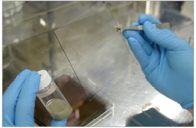 은(Ag) 나노와이어(Silver Nanowire)에 전자빔을 쏘아 투명하고 휘어지는 디스플레이 등에 적용할 수 있는 투명전극을 제조하는 기술과, 제조과정에서 송풍 건조 공정[Air-Dry Process ; 열기를 가진 바람을 이용하여 은 나노와이어를 기판에 균일하게 분산시키는 공정]을 개발해 적용한 것이다.