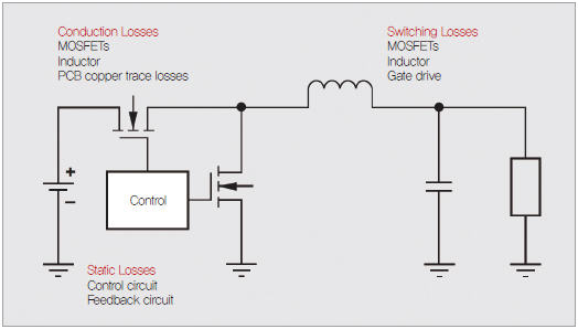 통합 또는 외부 MOSFET을 가진 동기식 스텝다운 파워 컨버터는 개발자가 효율에 영향을 미치는 파라미터들과 데이터시트의 자세한 사항을 이해할 경우 그 효율을 높일 수 있다. 이상적인 전력 컨버터가 없는 상황에서 개발자는 절충과 균형으로 전원 공급 장치의 효율에 영향을 미치는 파라미터들을 최적화해야 한다. 여기서는 전원 공급 장치의 몇 가지 기본 원리에 대해 논의해 보고, 스위칭 전압 레귤레이터의 전력 단계인 MOSFET이 효율에 미치는 영향에 대해 살펴본다.
