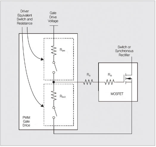 식 (6)에서 알 수 있듯이, 게이트-드라이브 손실이 모두 다 MOSFET에서 일어나는 것은 아니다.