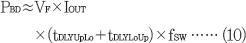 MOSFET 스위칭 손실은 식 (4)와 같이 부하 전류 및 전원 공급 장치의 스위칭 주파수와 함수관계에 있다.