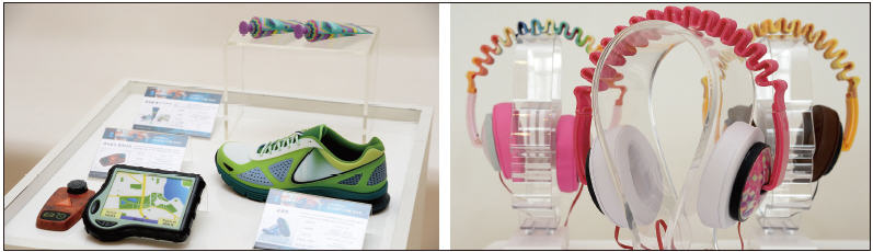 ▲ 신제품 J750 3D프린터로 출력한 모델과 이노디자인과 협업해서 프린팅한 시제품.