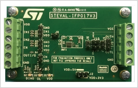 ‘L6362A’ 디바이스가 높은 값의 커패시티브 및 인덕티브 부하를 구동하는 것을 살펴보기 위해 STEVAL-IFP017V3(그림 5)로 분석해 보았다. STEVAL-IFP017V3은 ST가 개발한 전용 평가 보드로, 고객들이 이 디바이스의 동작을 평가할 수 있도록 간편한 애플리케이션 툴을 제공한다.
