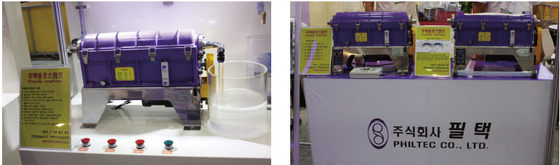 필택은 최근 국제환경산업기술&그린에너지전에 용정식 쌍원통 펌프, 무맥동 정량 호스 펌프, 셀프 레벨링 스키머, 유수분리기 등을 출품하며 참관객들로부터 관심을 받았다.