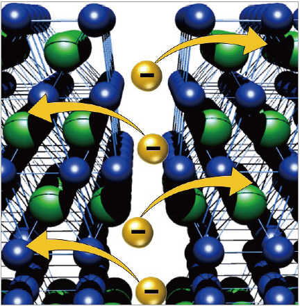 ▲ 비스무스 텔루라이드 결정계면에서 생성되는 전자 모식도