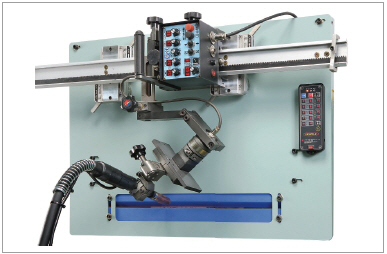 그리고 경량 수평 필렛 캐리지인 CS-61 모델은 기어 백래시(Gear Backlash)를 최소화해 정속 주행하므로 용접 품질을 향상시키며 장비 수명을 늘린다. 경사 각도는 75°까지 가능하며 양면에 터치 센서가 부착되어 있어 용접이 끝나면 자동으로 정지한다.