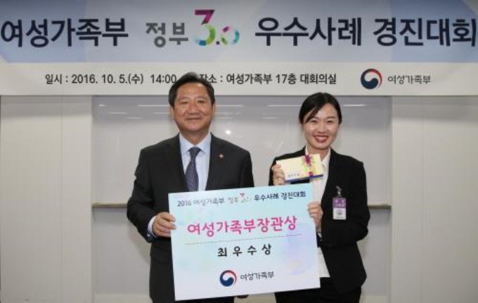 여성가족부는 5일 정부종합청사에서 정부3.0의 대중화와 경진대회 참가 자격을 부여하기 위해 우수사례 경진대회를 개최하고 시상을 진행했다.