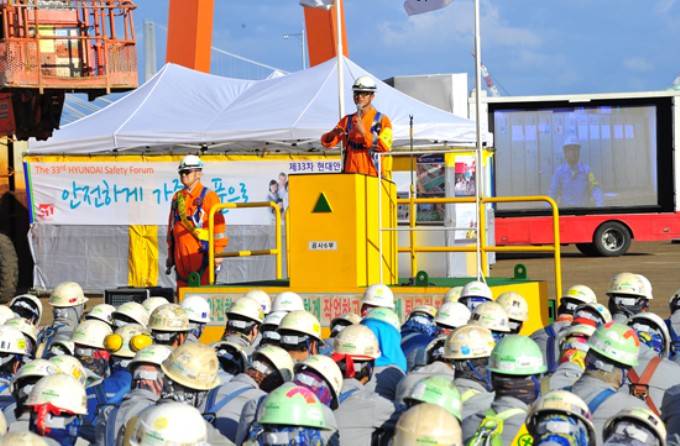 현대중공업이 최근 해양공장에서 해양사업부문 및 사내 협력회사 임직원 1만2천여 명이 참여하는 '현대안전포럼'을 개최했다고 10일 밝혔다.