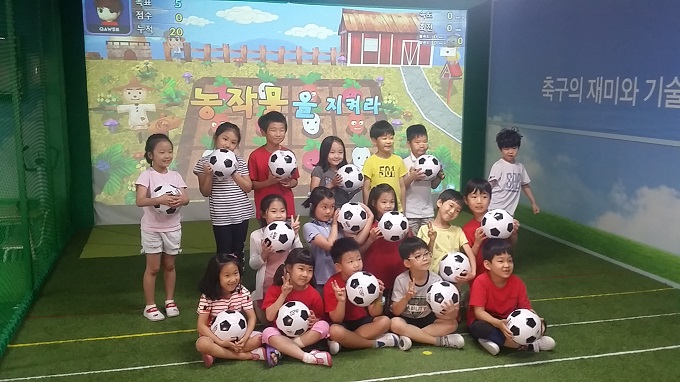 ▲ 서울 옥수초등학교에 설치된 VR 스포츠 교실 [사진=ETRI]