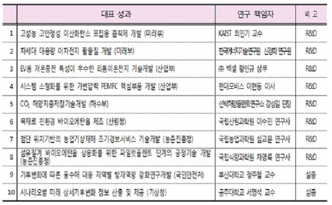 ▲ 기후변화대응 기술혁신 BEST10 [사진=미래부]