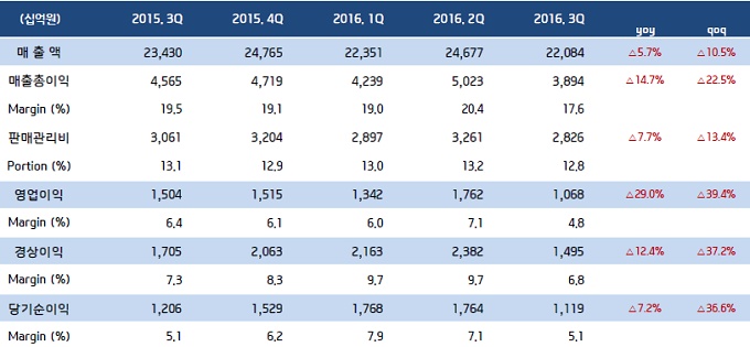 현대자동차 2016년 3분기 매출실적 [자료=현대자동차]