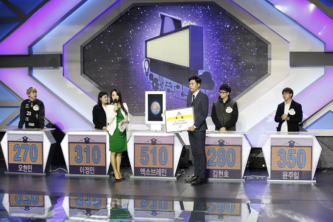 ETRI는 18일, ETRI 대강당서 개최된 장학퀴즈 <대결! 엑소브레인> 녹화에서 엑소브레인은 장학퀴즈 상·하반기 우승자, 수능만점자, 퀴즈왕 등을 제치고 2등에 160점 앞선 510점을 거두며 완승했다고 밝혔다.